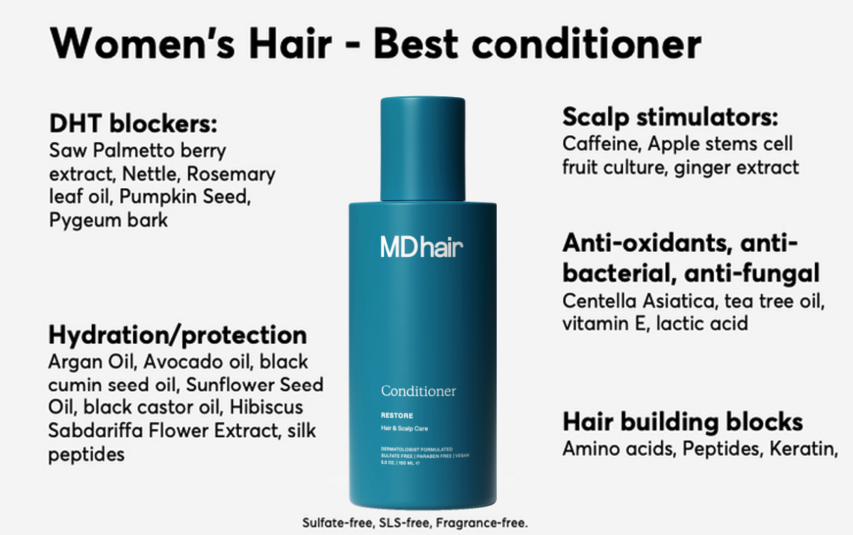 MDhair's products are pH-balanced. The pH of the MDhair Restore Shampoo is 5.16, the conditioner has a pH of 5.6, the pH of the Restore Serum is 5.3, and the MDhair Minoxidil pH is 3.