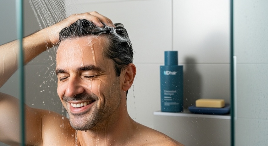 MDhair formulas—supported by the Nuvane project documentation and enriched with targeted actives, including peptides, botanical extracts, and micronutrients—work synergistically with filtered water. When hair and scalp are not exposed to chlorine or high-pH water, these active ingredients penetrate more effectively, enhancing: