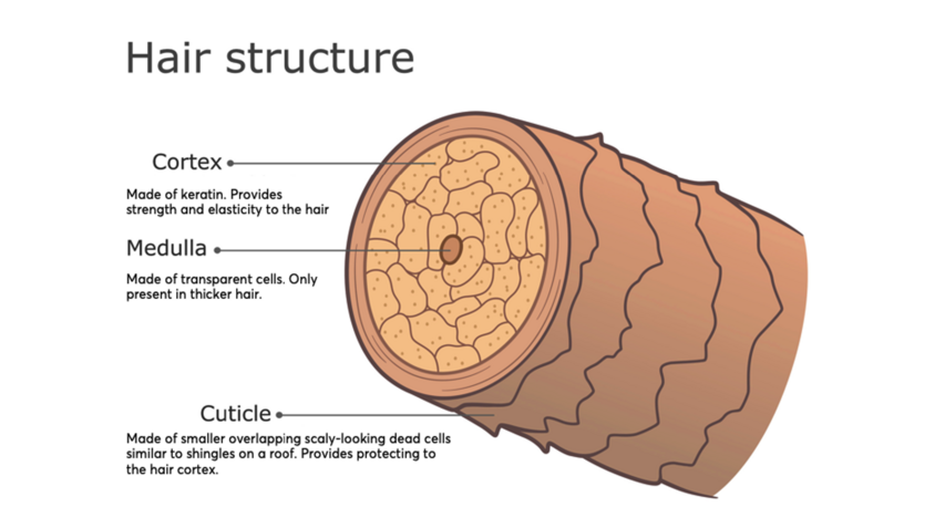 The hair shaft consists of 3 main layers: