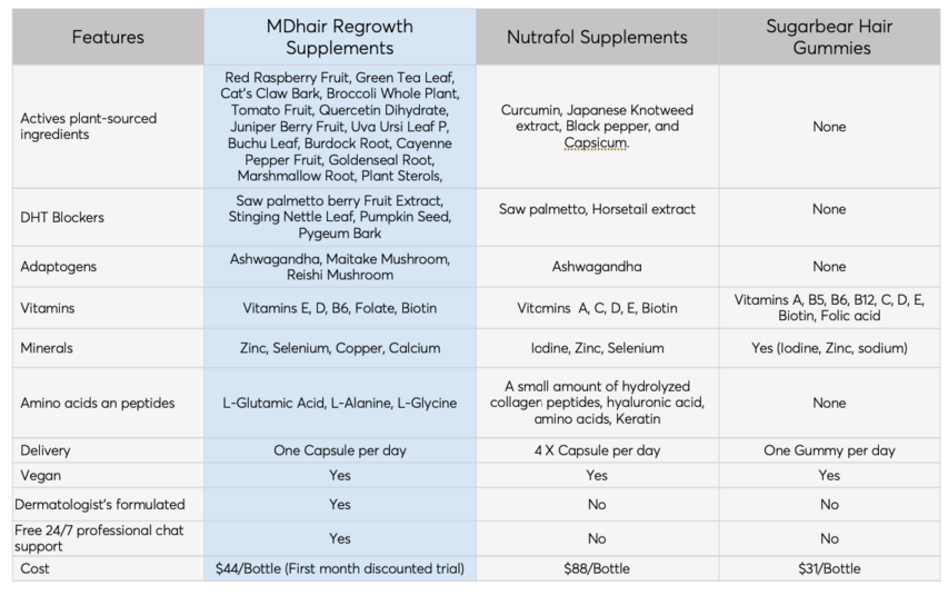 MDhair Regrowth Supplements vs. Nutrafol Supplements vs. Sugarbear Hair