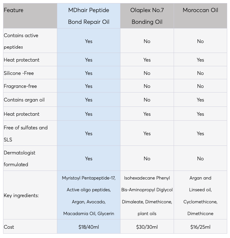 MDhair Peptide Bond Repair Oil vs. Olaplex No.7 bonding oil vs. Moroccan oil